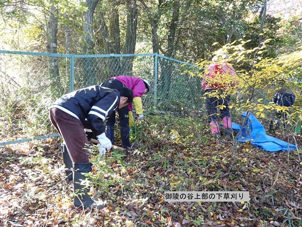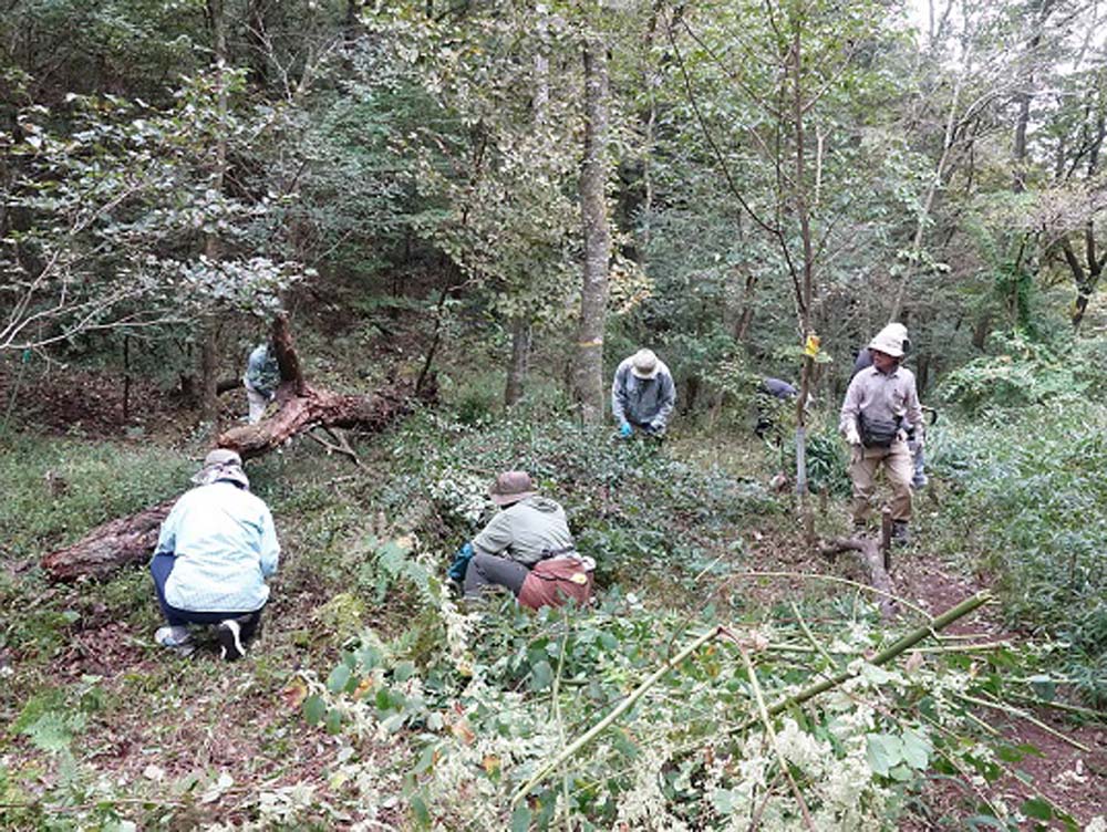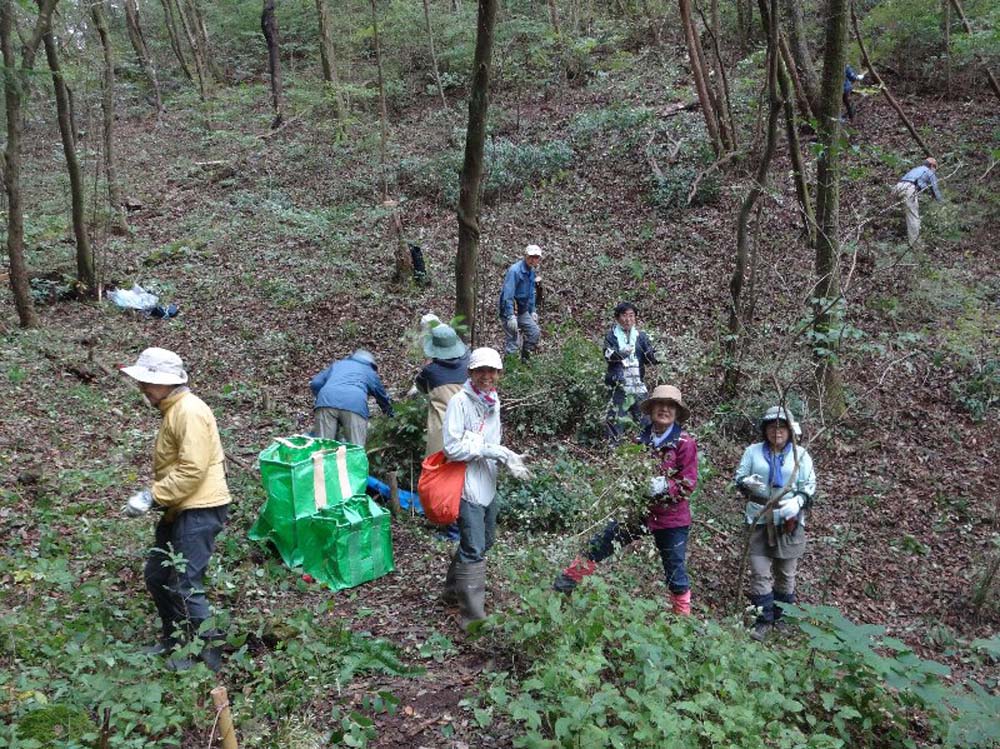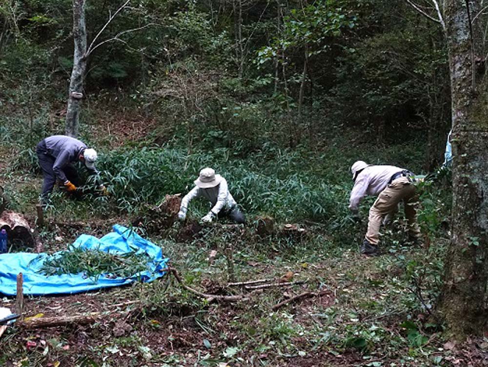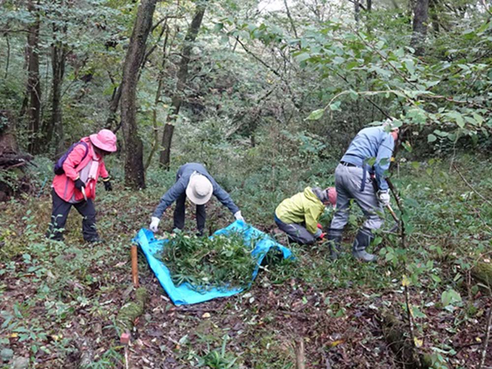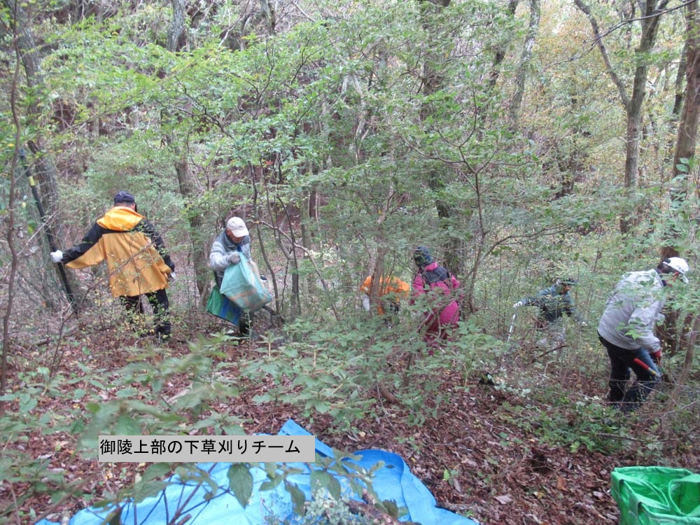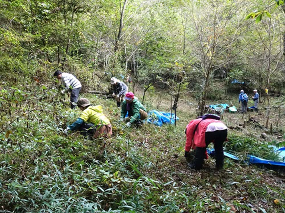 11月28日逢坂峠のカタクリ保護地の笹刈りを3団体合同で行いました