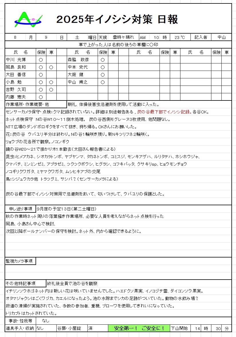 2025年8月9日(土)のイノシシ対策報告