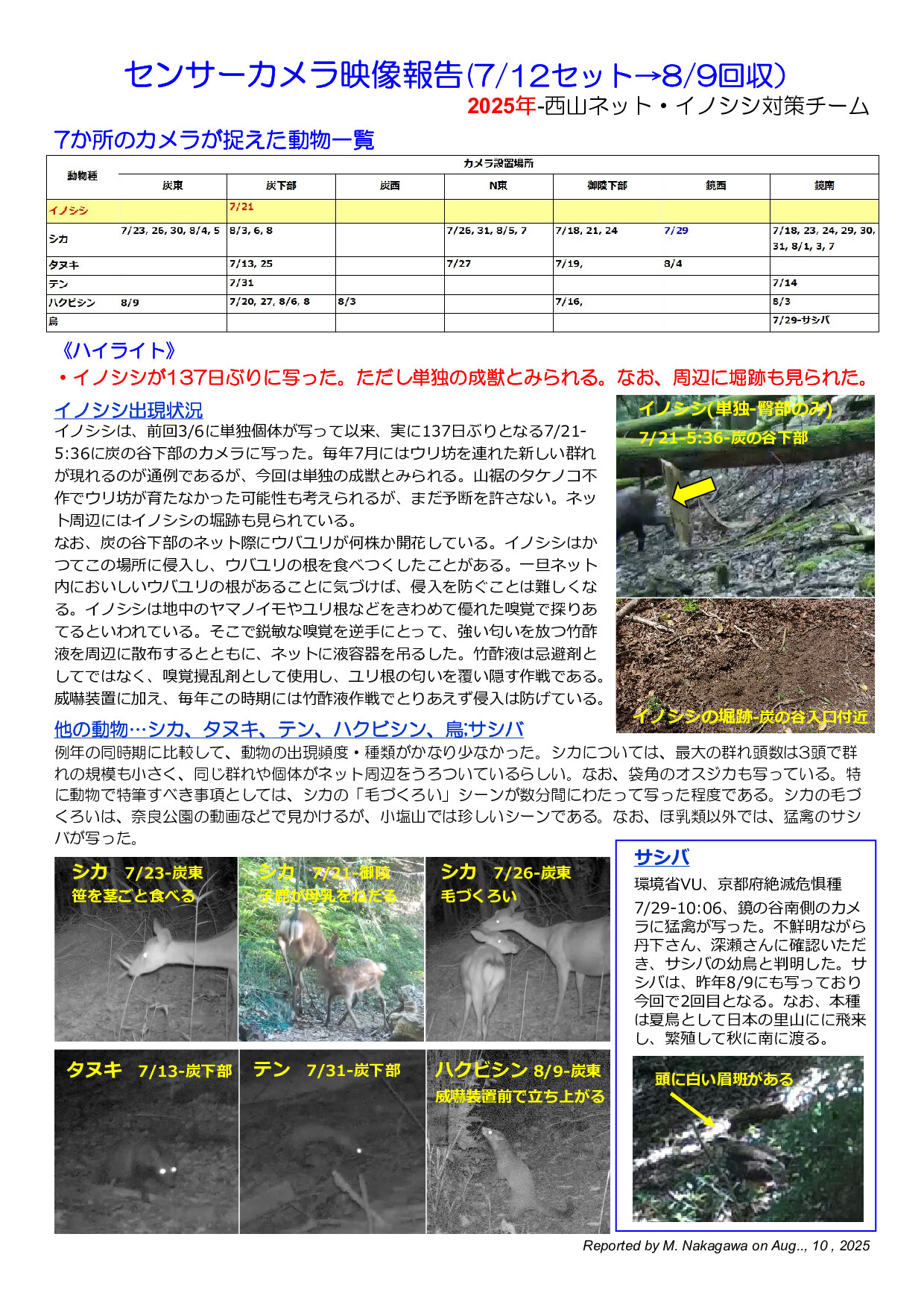 センサーカメラ報告