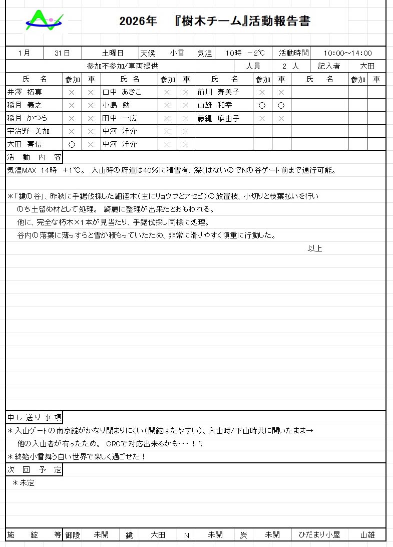 26年1月31日(土) 樹木チームの活動報告