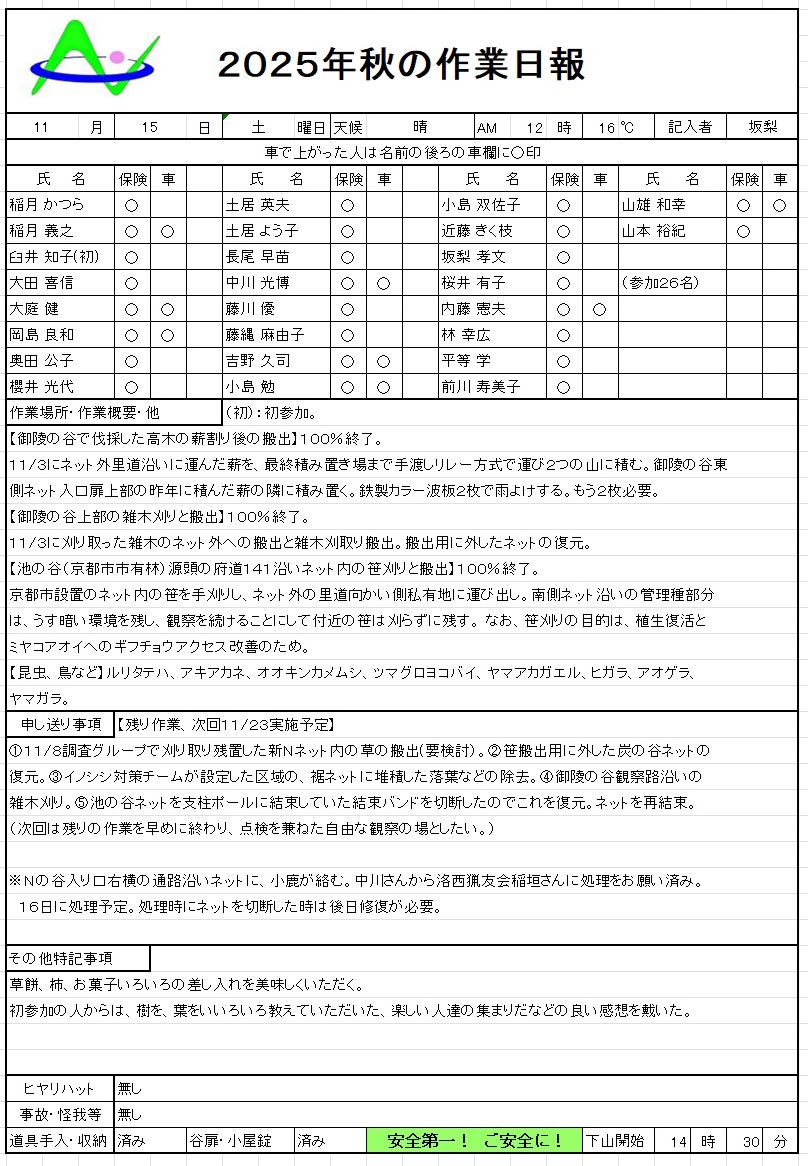 秋の作業 11月15日(土)の活動報告