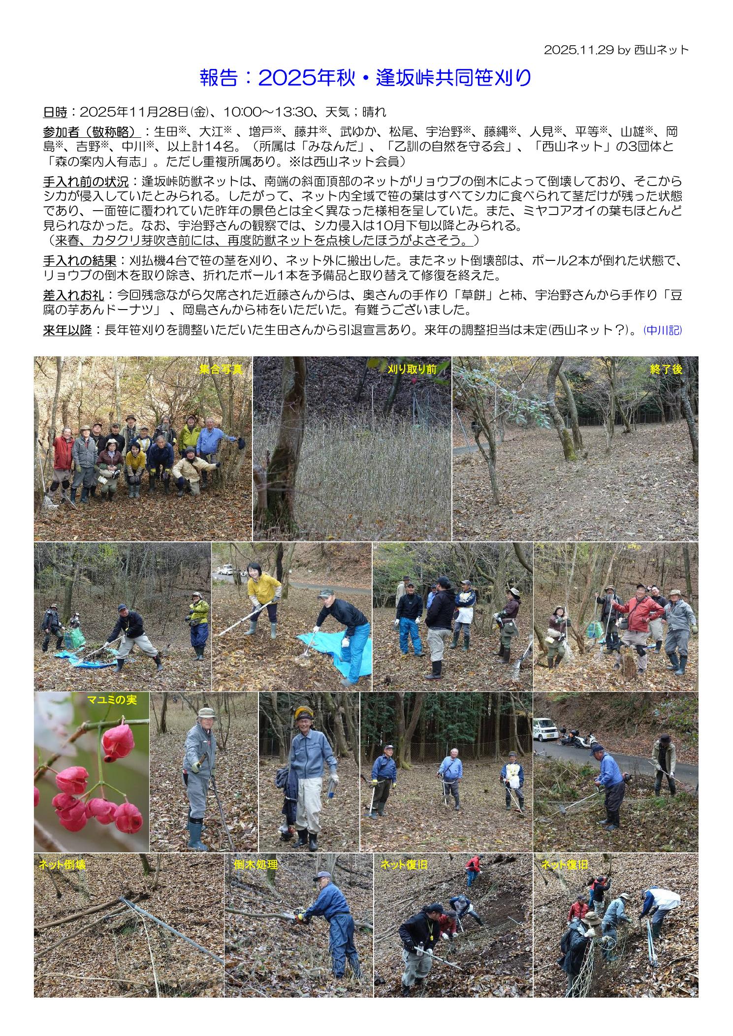逢坂峠の作業 11月28日(金)の3団体合同活動報告